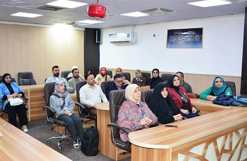 A group of female faculty members from the Center for the Revival of Arab Scientific Heritage at the University of Baghdad participated on Monday, November 17, 2025, in a training workshop organized by the Center for Continuing Education at the University of Baghdad as part of the activities of Anti-Drug Week. The workshop was presented by Professor Dr. Arkan Saeed Khattab, Director of the Center, with the attendance of a number of specialists and individuals concerned with awareness-related issues. The workshop addressed the main themes related to the drug epidemic, the most prominent methods of combating it, and the negative effects it leaves on society. It also discussed modern prevention strategies and the role of educational institutions in raising awareness among students and promoting healthy and responsible behavior. The participating faculty members showed clear engagement through presenting viewpoints and scientific interventions that contribute to supporting national efforts aimed at limiting the spread of drugs, emphasizing the importance of continuing such awareness programs within the university environment.